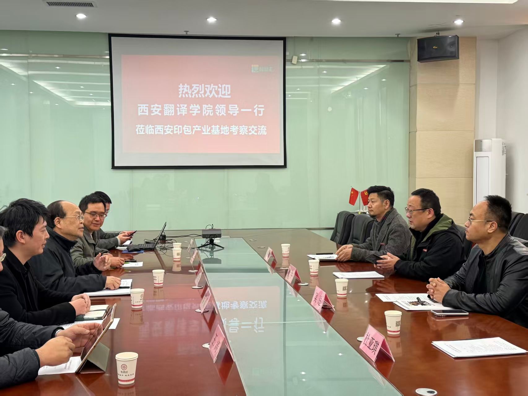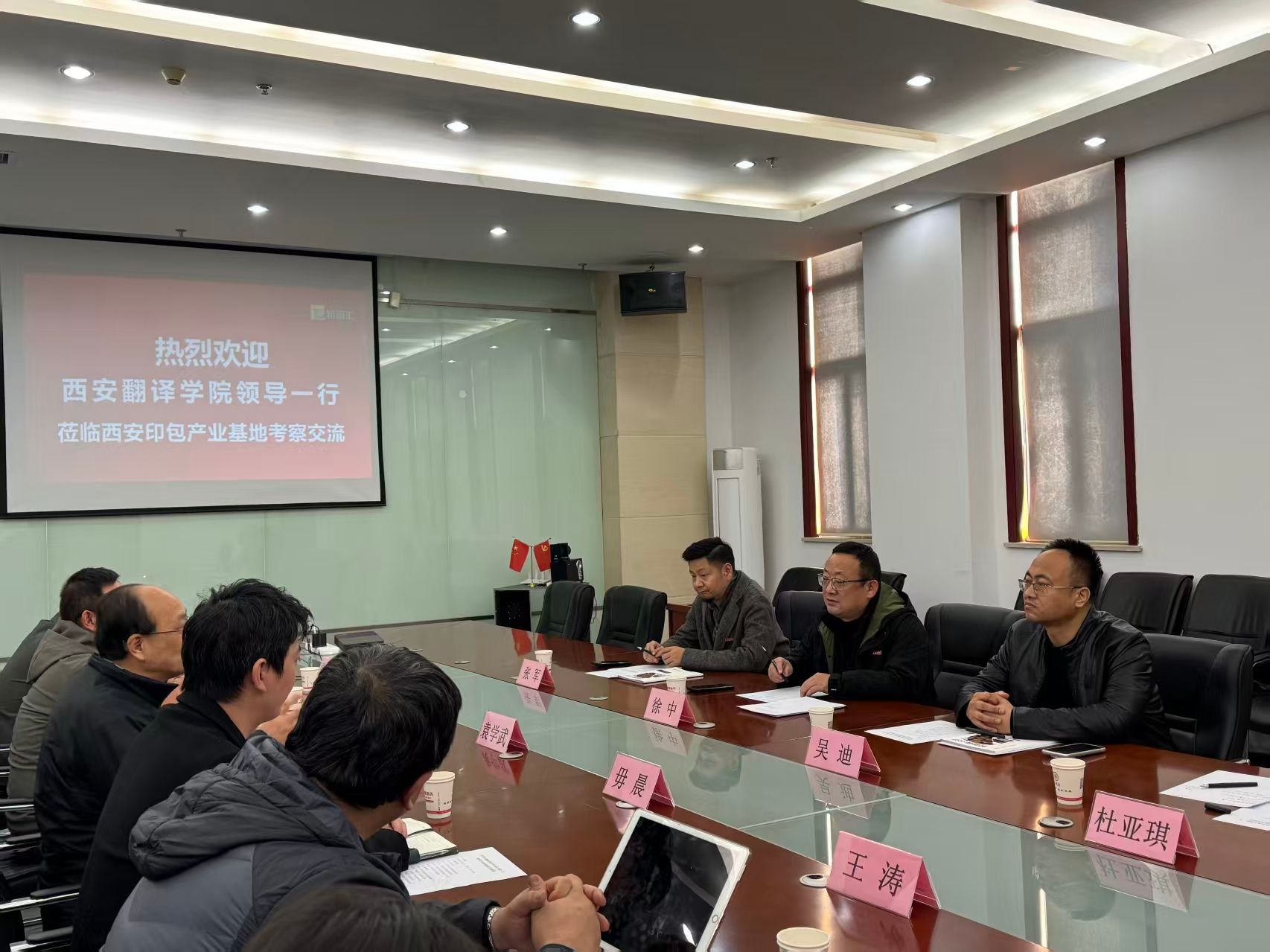 2025年11月21日,西安翻译学院艺术与设计学院行政副院长徐中、副院长吴迪、相关科室主任张军等一行5人赴西安印刷包装产业基地有限公司开展访企拓岗交流活动,与基地董事长袁学武及核心团队围绕产业发展、校企合作、人才培养等议题展开深度洽谈,为双方后续资源共享、协同发展奠定坚实基础。