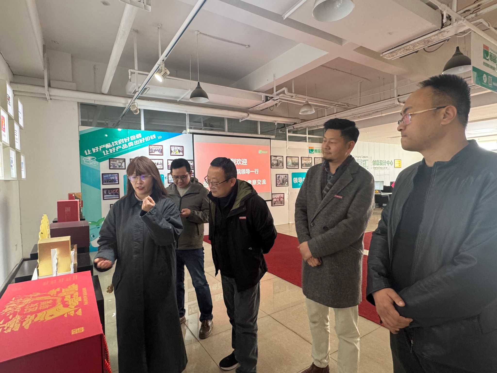 交流中,袁学武董事长详细介绍了西安印刷包装产业基地的发展历程、产业布局及核心优势,并重点阐述了基地三大未来发展方向:一是搭建创意设计展示平台,策划举办涵盖陕西特色包装设计、IP形象创作、文创产品开发、非遗活化设计等多门类的创意设计大赛,激活本土设计创新活力;二是构建特色产业设计生态链,聚焦医药、茶叶、白酒、羊奶、苹果、猕猴桃等陕西优势龙头产业,打造"3+X"多元化发展模式,助力区域产业品牌升级;三是完善产业生态服务体系,通过线上线下融合发展拓宽产业边界,强化版权保护与运营,构建良性循环的产业生态闭环。
