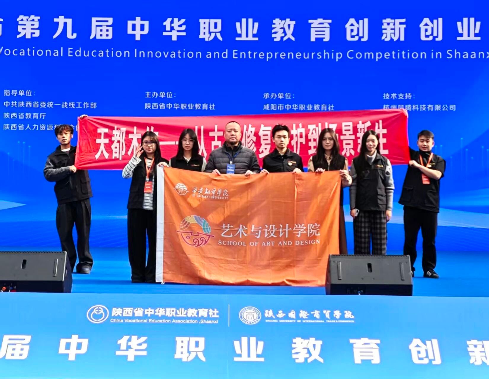 2025年11月26日,在陕西省第九届中华职业教育创新创业大赛决赛中,由我院闫鹏飞、吴迪老师指导,吕帅、朱子轩等同学组成的“天都木作”项目团队荣获本科组一等奖,并开展了示范路演。此后,该项目被中华职业教育社总社遴选为全省前五强,成功晋级全国训练营分营。