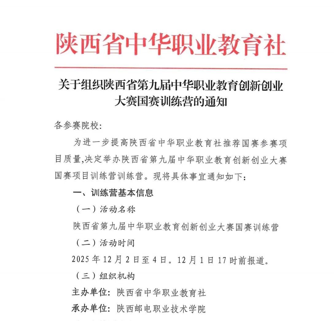 2025年12月2日至4日,“天都木作”团队参加了陕西省第九届中华职业教育创新创业大赛全国训练营分营的集中培训。在培训期间,团队接受了全国双创领域专家、资深投资人和成功创业者的系统指导与精心打磨,通过多种方式全面优化和提升项目。